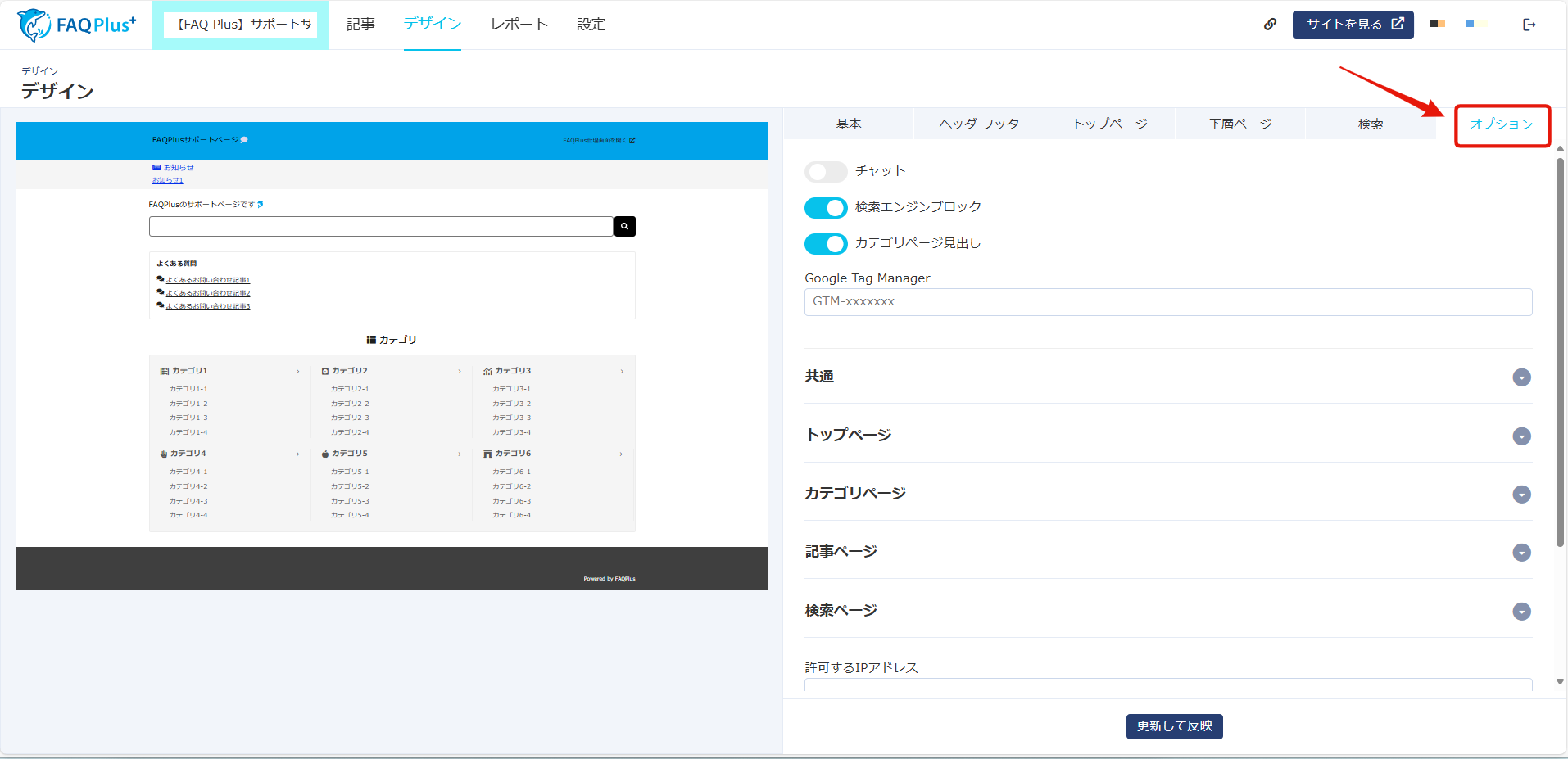 (3)入力後、「更新して反映」をクリックし設定完了です。