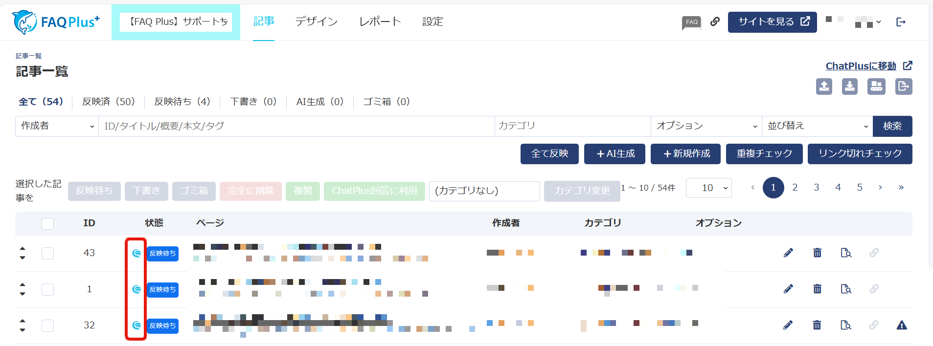「ChatPlus回答に利用」とは、ChatPlusのAIチャットボットプラン(生成AI)をご契約いただいている際に、ChatPlusのAIに該当記事を簡単に学習させることが出来る機能となります。