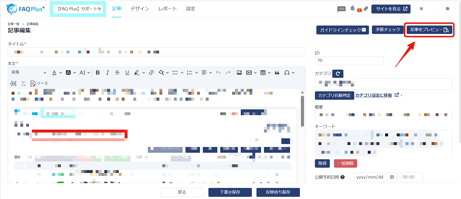 下書き状態の記事は、プレビュー機能を使って内容を確認できます。