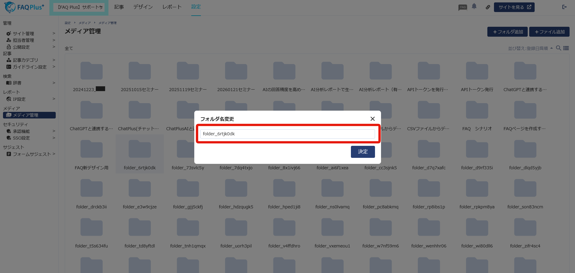 メディア管理は、FAQPlus上で画像やファイルをアップロード・管理できるストレージ機能です。